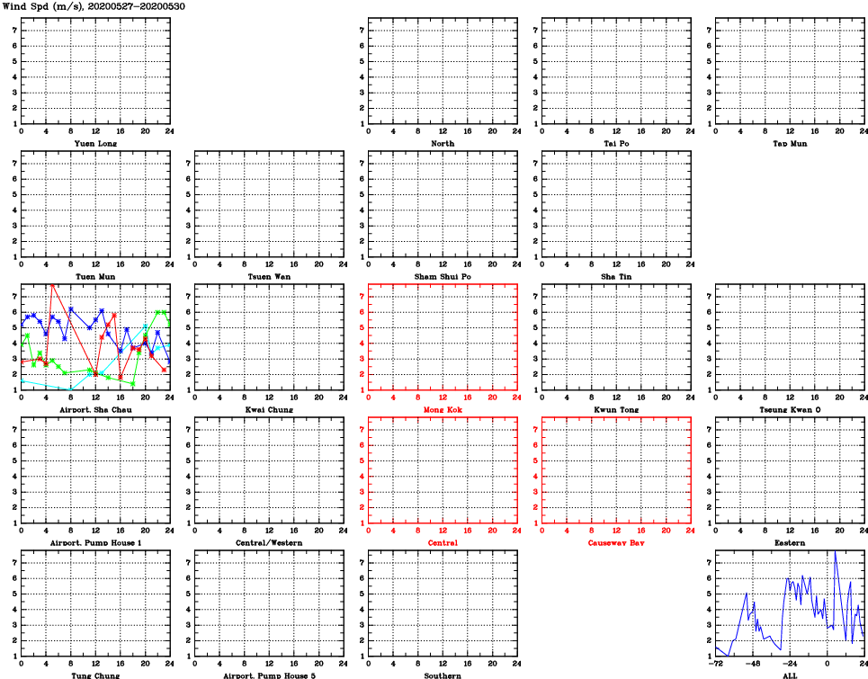 | Air Quality Data Time Series for WS (2020/05/30) | ( Line colors: Day -3 Day -2 Day -1 Current day ) | 2D Map Current AQHI |