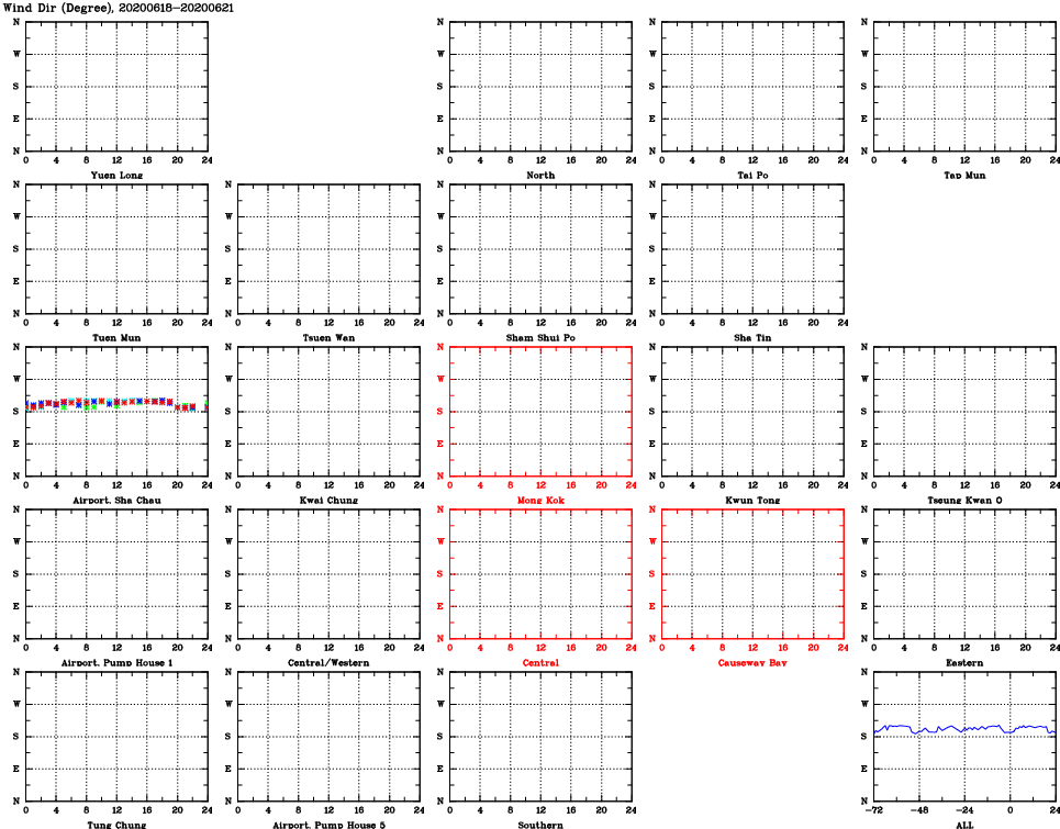 | Air Quality Data Time Series for WD (2020/06/21) | ( Line colors: Day -3 Day -2 Day -1 Current day ) | 2D Map Current AQHI |