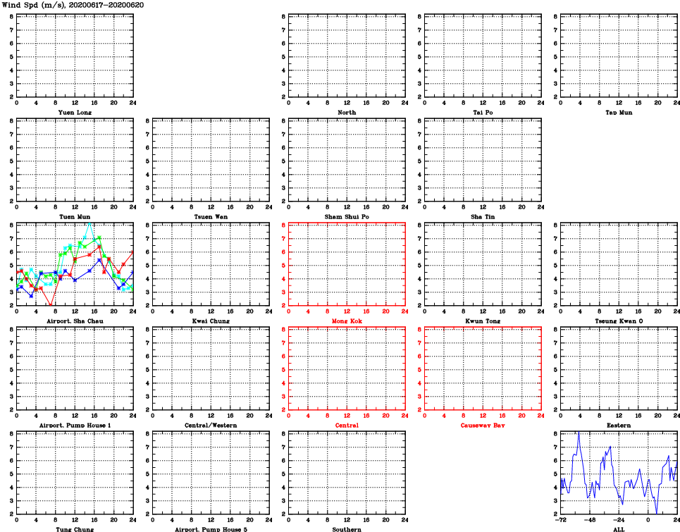 | Air Quality Data Time Series for WS (2020/06/20) | ( Line colors: Day -3 Day -2 Day -1 Current day ) | 2D Map Current AQHI |
