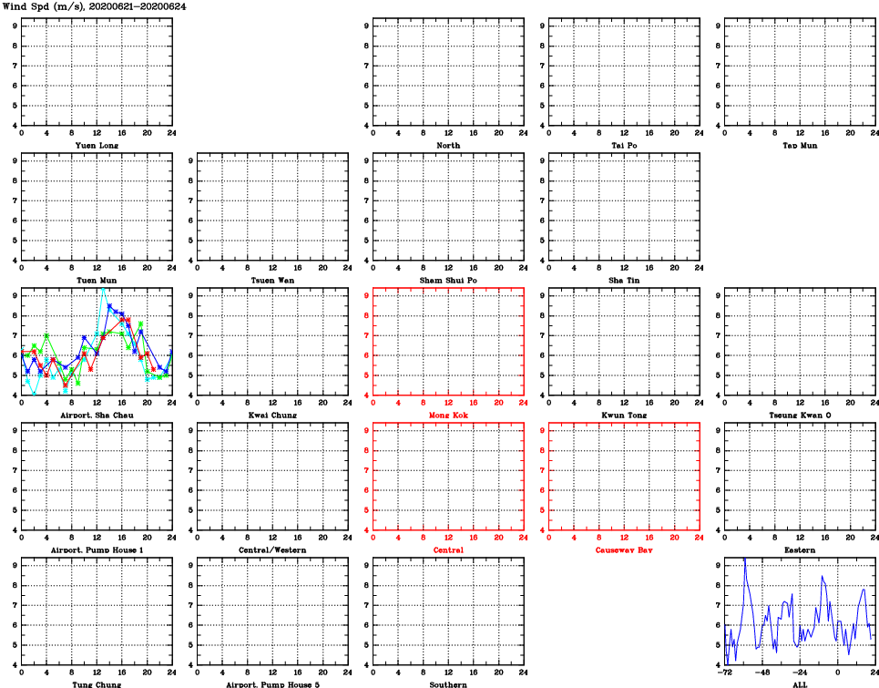 | Air Quality Data Time Series for WS (2020/06/24) | ( Line colors: Day -3 Day -2 Day -1 Current day ) | 2D Map Current AQHI |