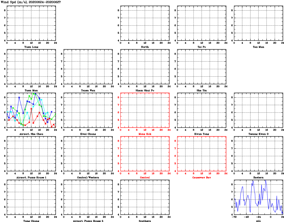 | Air Quality Data Time Series for WS (2020/06/27) | ( Line colors: Day -3 Day -2 Day -1 Current day ) | 2D Map Current AQHI |