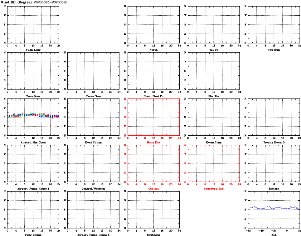 | Air Quality Data Time Series for WD (2020/06/28) | ( Line colors: Day -3 Day -2 Day -1 Current day ) | 2D Map Current AQHI |