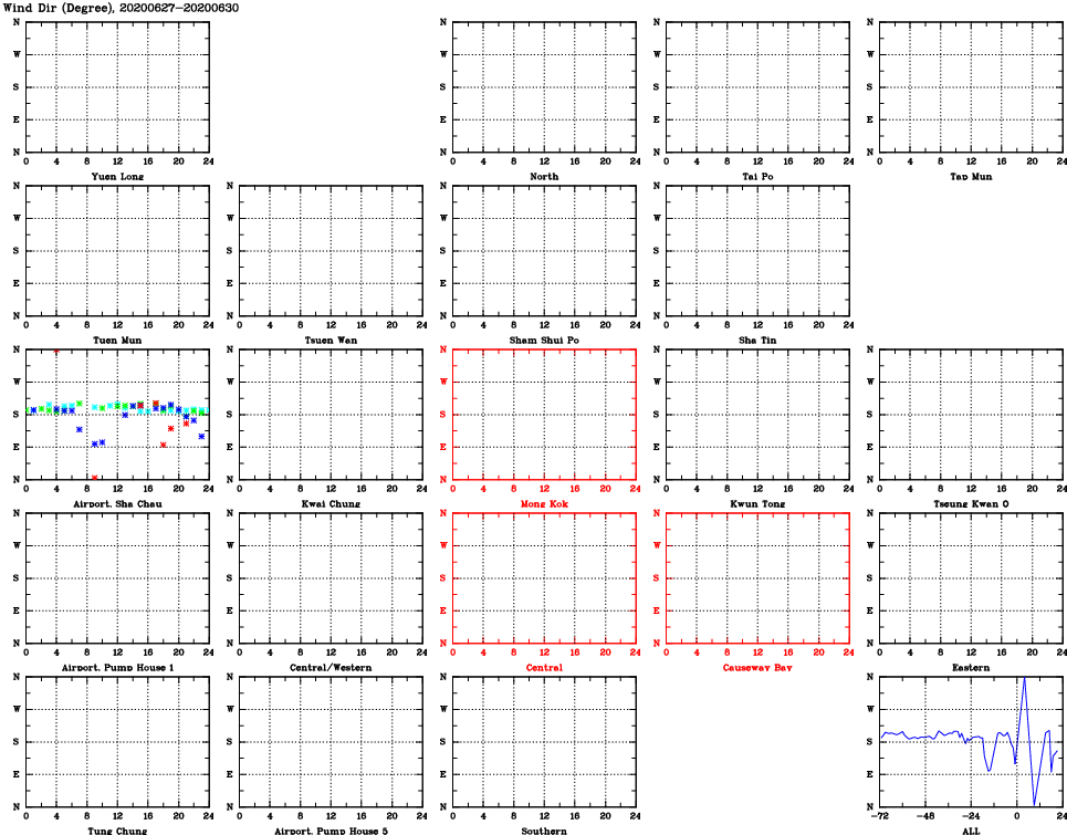 | Air Quality Data Time Series for WD (2020/06/30) | ( Line colors: Day -3 Day -2 Day -1 Current day ) | 2D Map Current AQHI |