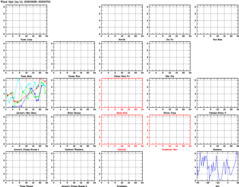 | Air Quality Data Time Series for WS (2020/07/01) | ( Line colors: Day -3 Day -2 Day -1 Current day ) | 2D Map Current AQHI |