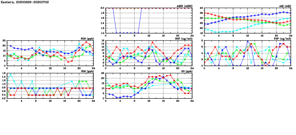 | Air Quality Data Time Series in Eastern (2020/07/02) | ( Line colors: Day -3 Day -2 Day -1 Current day ) | 2D Map Current AQHI |