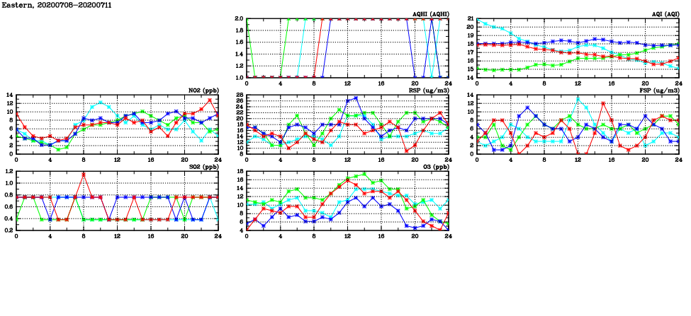| Air Quality Data Time Series in Eastern (2020/07/11) | ( Line colors: Day -3 Day -2 Day -1 Current day ) | 2D Map Current AQHI |