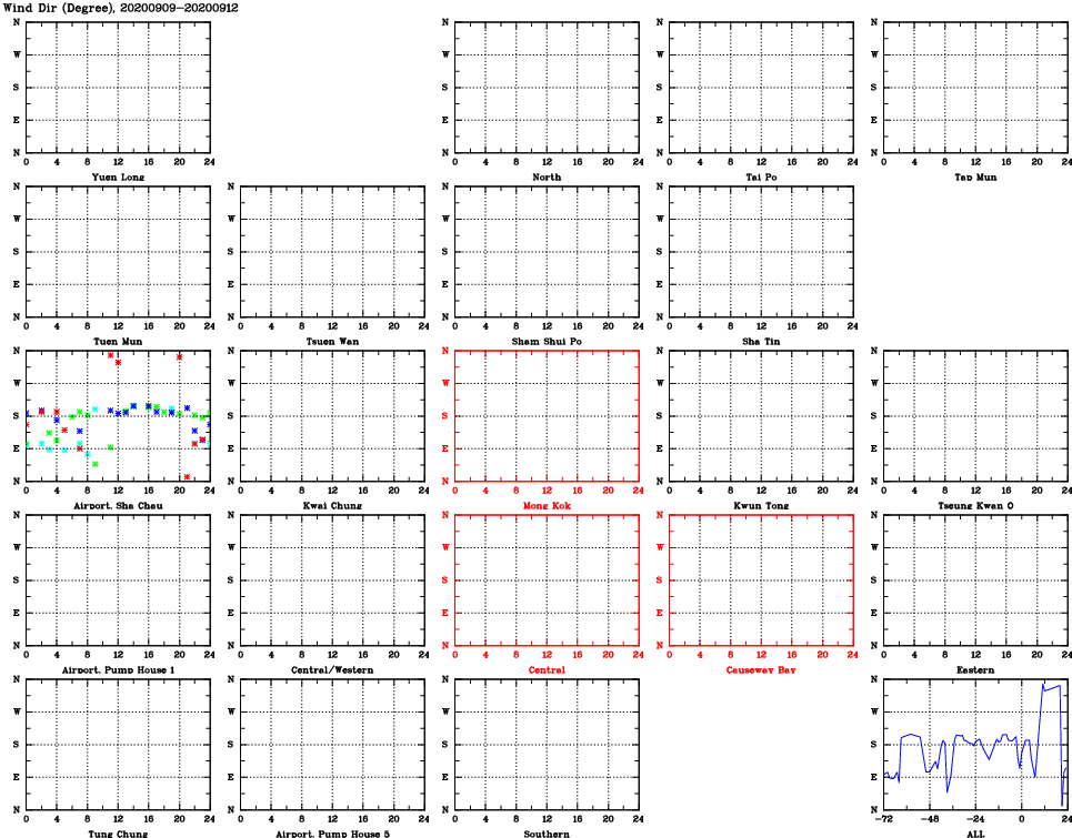 | Air Quality Data Time Series for WD (2020/09/12) | ( Line colors: Day -3 Day -2 Day -1 Current day ) | 2D Map Current AQHI |