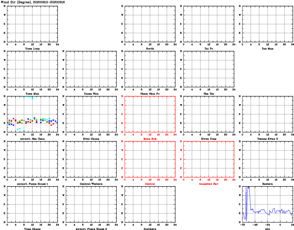 | Air Quality Data Time Series for WD (2020/09/16) | ( Line colors: Day -3 Day -2 Day -1 Current day ) | 2D Map Current AQHI |