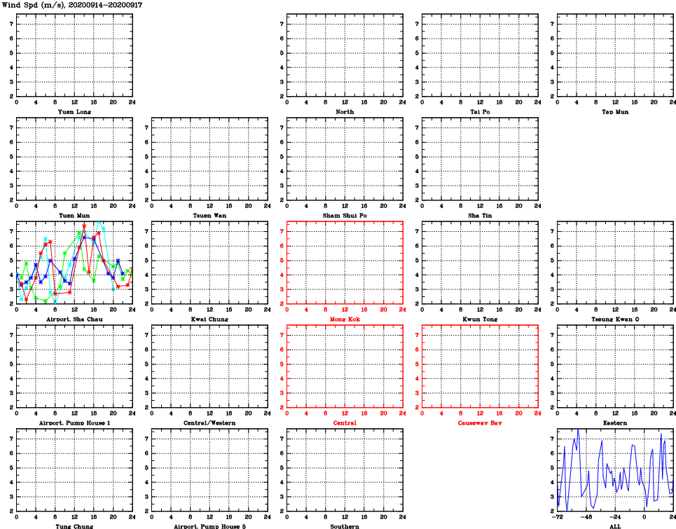 | Air Quality Data Time Series for WS (2020/09/17) | ( Line colors: Day -3 Day -2 Day -1 Current day ) | 2D Map Current AQHI |