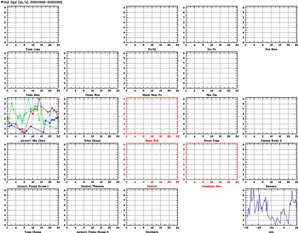 | Air Quality Data Time Series for WS (2020/09/21) | ( Line colors: Day -3 Day -2 Day -1 Current day ) | 2D Map Current AQHI |