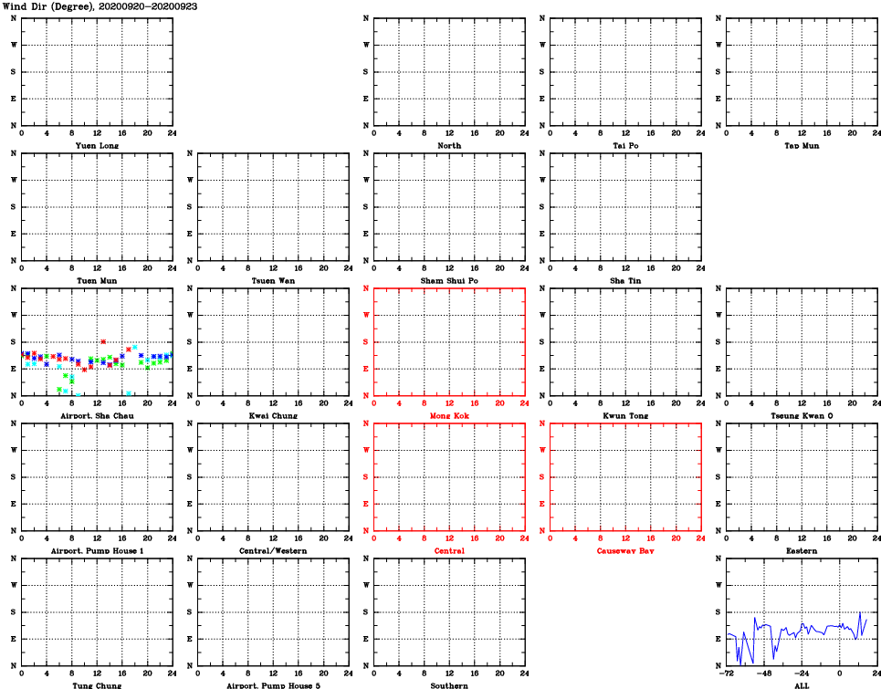 | Air Quality Data Time Series for WD (2020/09/23) | ( Line colors: Day -3 Day -2 Day -1 Current day ) | 2D Map Current AQHI |