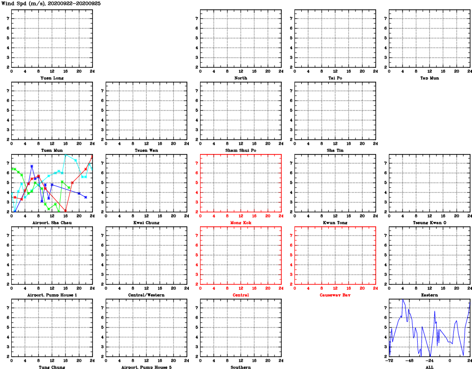 | Air Quality Data Time Series for WS (2020/09/25) | ( Line colors: Day -3 Day -2 Day -1 Current day ) | 2D Map Current AQHI |