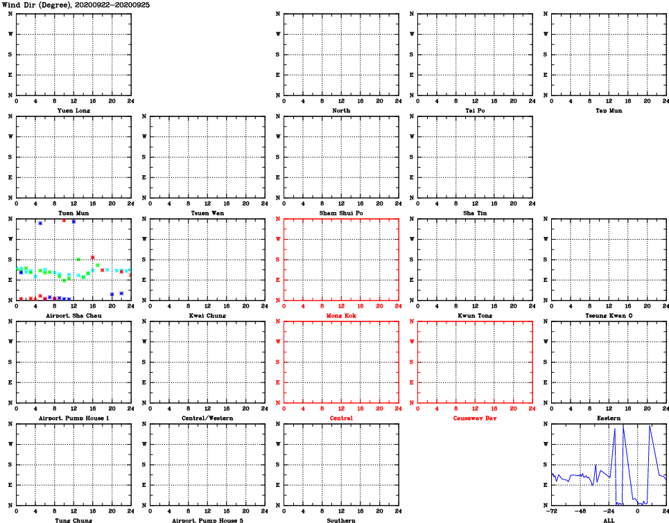 | Air Quality Data Time Series for WD (2020/09/25) | ( Line colors: Day -3 Day -2 Day -1 Current day ) | 2D Map Current AQHI |