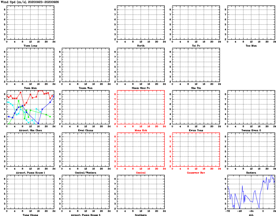 | Air Quality Data Time Series for WS (2020/09/26) | ( Line colors: Day -3 Day -2 Day -1 Current day ) | 2D Map Current AQHI |
