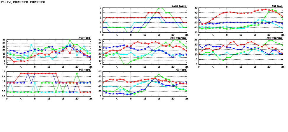 | Air Quality Data Time Series in Tai Po (2020/09/26) | ( Line colors: Day -3 Day -2 Day -1 Current day ) | 2D Map Current AQHI |