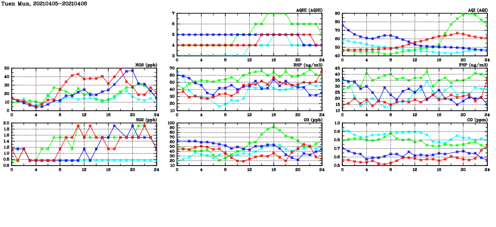 | Parameters: | AQHI | AQI | RSP | FSP | NO2 | SO2 | O3 | CO | Temp | WS | WD |