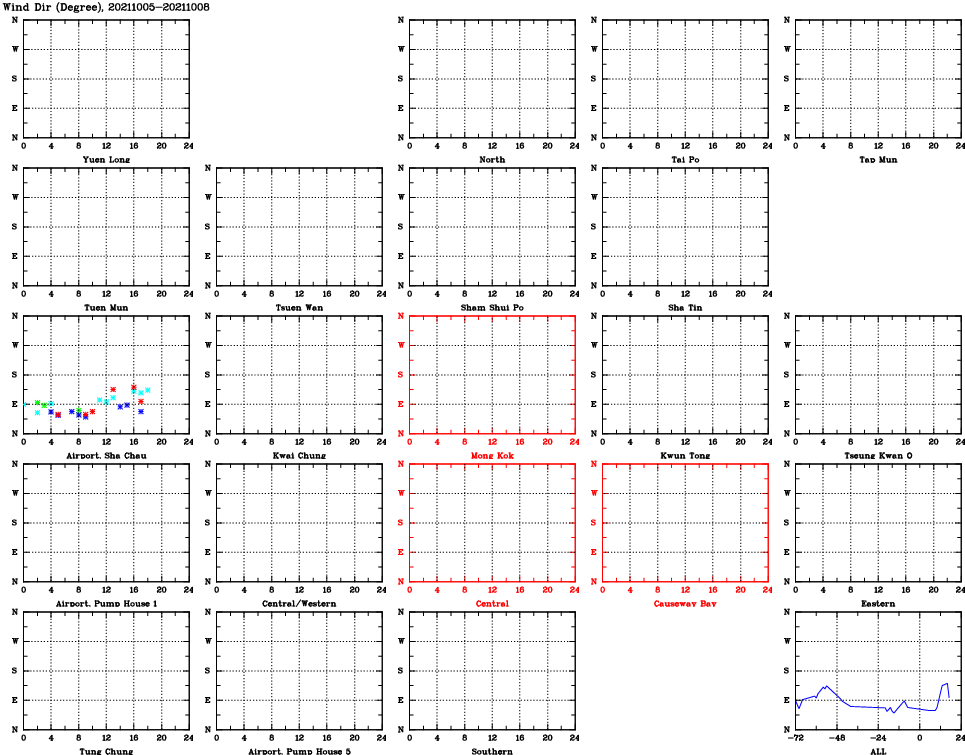 | Air Quality Data Time Series for WD (2021/10/08) | ( Line colors: Day -3 Day -2 Day -1 Current day ) | 2D Map Current AQHI |