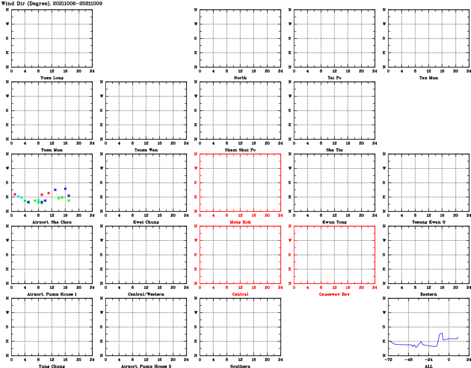 | Air Quality Data Time Series for WD (2021/10/09) | ( Line colors: Day -3 Day -2 Day -1 Current day ) | 2D Map Current AQHI |