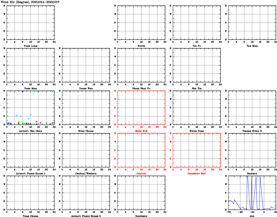 | Air Quality Data Time Series for WD (2021/10/17) | ( Line colors: Day -3 Day -2 Day -1 Current day ) | 2D Map Current AQHI |