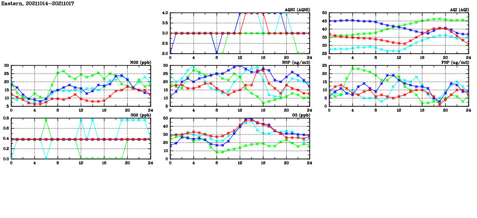 | Air Quality Data Time Series in Eastern (2021/10/17) | ( Line colors: Day -3 Day -2 Day -1 Current day ) | 2D Map Current AQHI |