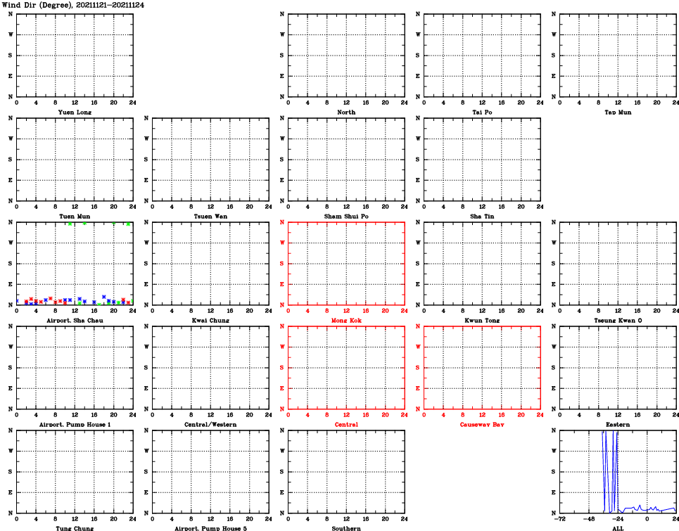 | Air Quality Data Time Series for WD (2021/11/24) | ( Line colors: Day -3 Day -2 Day -1 Current day ) | 2D Map Current AQHI |