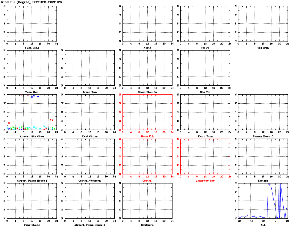 | Air Quality Data Time Series for WD (2021/11/26) | ( Line colors: Day -3 Day -2 Day -1 Current day ) | 2D Map Current AQHI |
