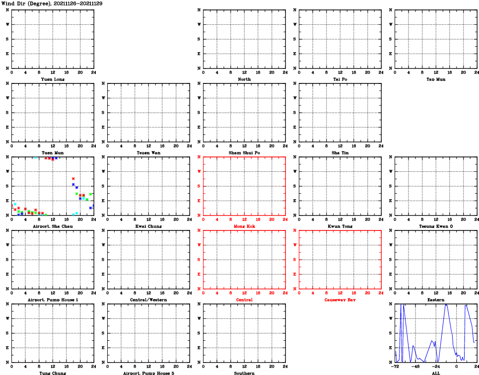 | Air Quality Data Time Series for WD (2021/11/29) | ( Line colors: Day -3 Day -2 Day -1 Current day ) | 2D Map Current AQHI |