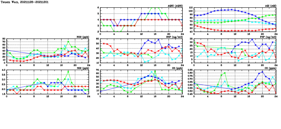 | Parameters: | AQHI | AQI | RSP | FSP | NO2 | SO2 | O3 | CO | Temp | WS | WD |