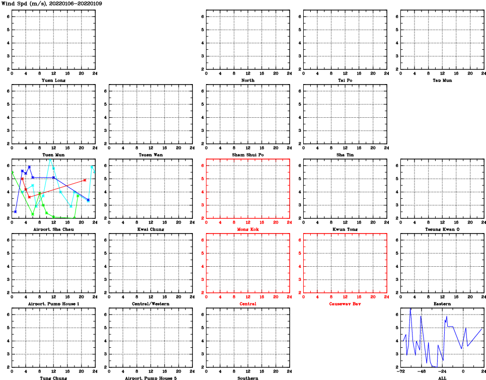 | Air Quality Data Time Series for WS (2022/01/09) | ( Line colors: Day -3 Day -2 Day -1 Current day ) | 2D Map Current AQHI |