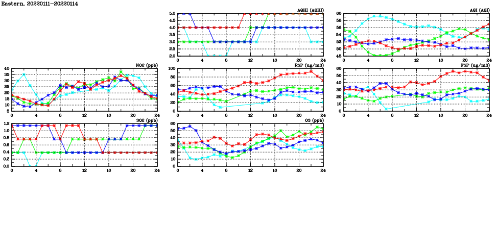 | Air Quality Data Time Series in Eastern (2022/01/14) | ( Line colors: Day -3 Day -2 Day -1 Current day ) | 2D Map Current AQHI |