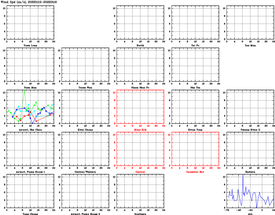 | Air Quality Data Time Series for WS (2022/01/16) | ( Line colors: Day -3 Day -2 Day -1 Current day ) | 2D Map Current AQHI |