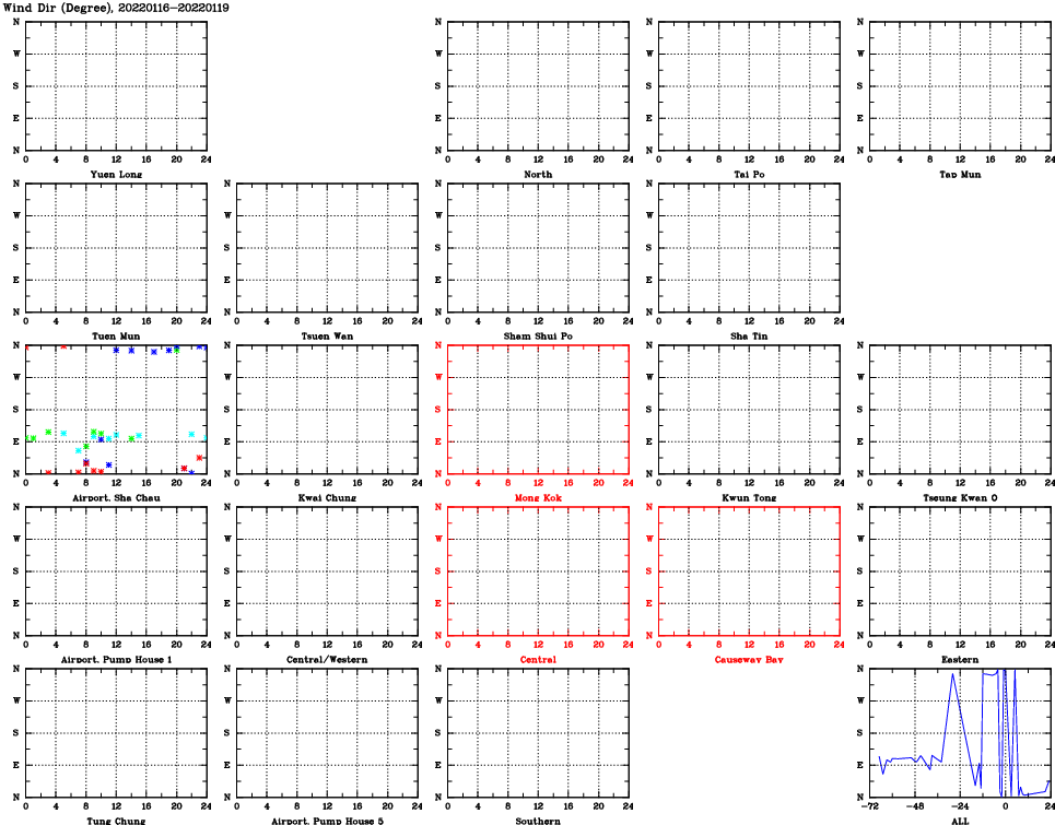 | Air Quality Data Time Series for WD (2022/01/19) | ( Line colors: Day -3 Day -2 Day -1 Current day ) | 2D Map Current AQHI |