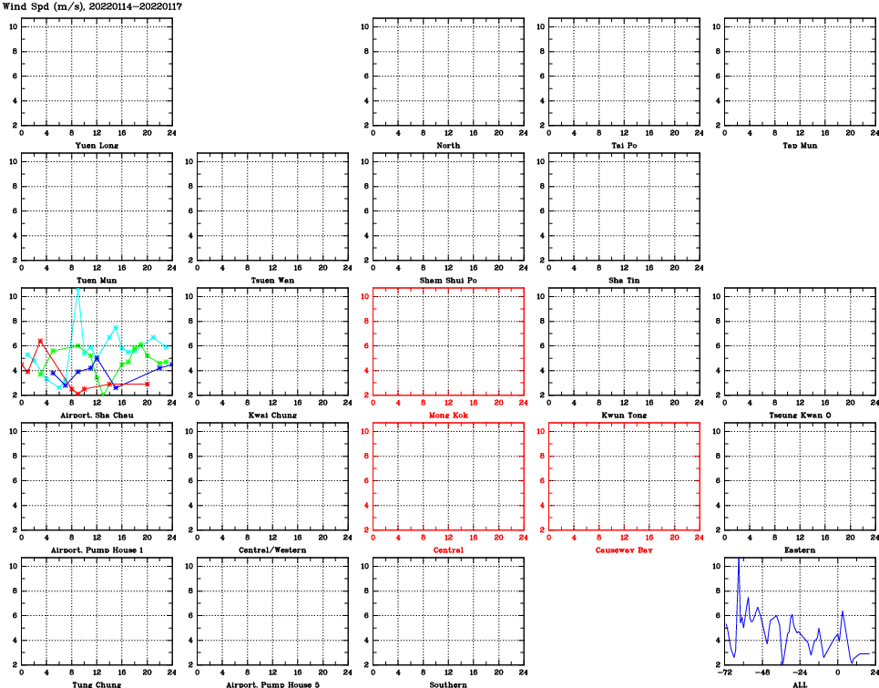 | Air Quality Data Time Series for WS (2022/01/17) | ( Line colors: Day -3 Day -2 Day -1 Current day ) | 2D Map Current AQHI |