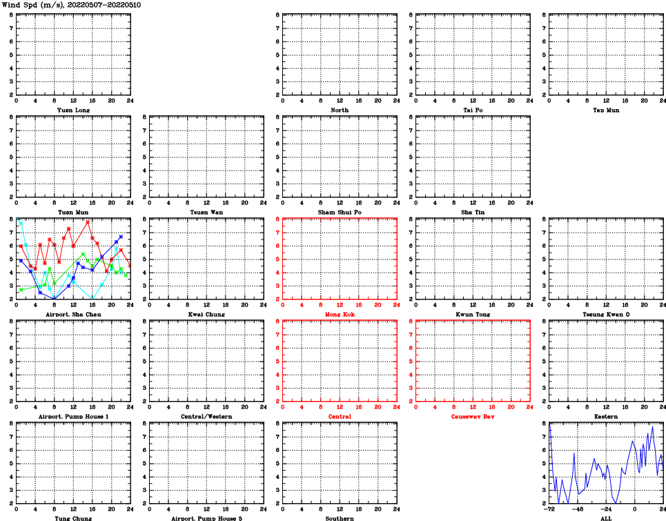 | Air Quality Data Time Series for WS (2022/05/10) | ( Line colors: Day -3 Day -2 Day -1 Current day ) | 2D Map Current AQHI |