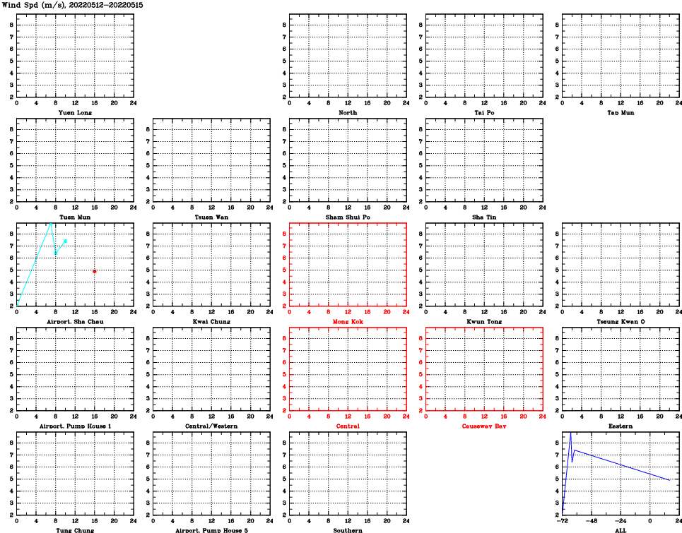 | Air Quality Data Time Series for WS (2022/05/15) | ( Line colors: Day -3 Day -2 Day -1 Current day ) | 2D Map Current AQHI |