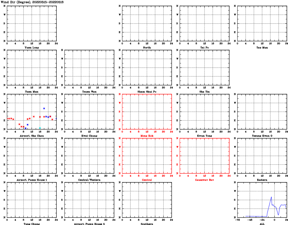 | Air Quality Data Time Series for WD (2022/05/18) | ( Line colors: Day -3 Day -2 Day -1 Current day ) | 2D Map Current AQHI |