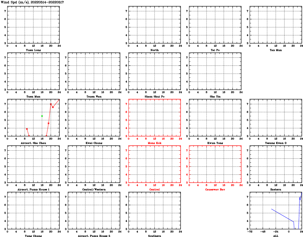 | Air Quality Data Time Series for WS (2022/05/17) | ( Line colors: Day -3 Day -2 Day -1 Current day ) | 2D Map Current AQHI |