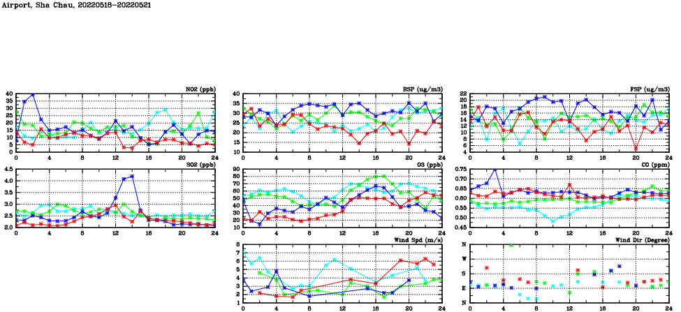 | Parameters: | AQHI | AQI | RSP | FSP | NO2 | SO2 | O3 | CO | Temp | WS | WD |