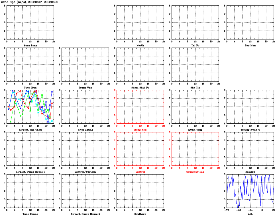 | Air Quality Data Time Series for WS (2022/06/20) | ( Line colors: Day -3 Day -2 Day -1 Current day ) | 2D Map Current AQHI |