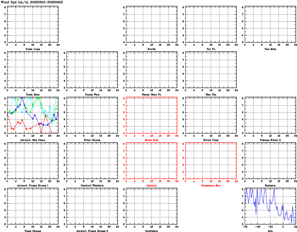 | Air Quality Data Time Series for WS (2022/06/22) | ( Line colors: Day -3 Day -2 Day -1 Current day ) | 2D Map Current AQHI |