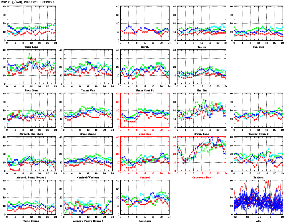 | Air Quality Data Time Series for RSP (2022/06/22) | ( Line colors: Day -3 Day -2 Day -1 Current day ) | 2D Map Current AQHI |