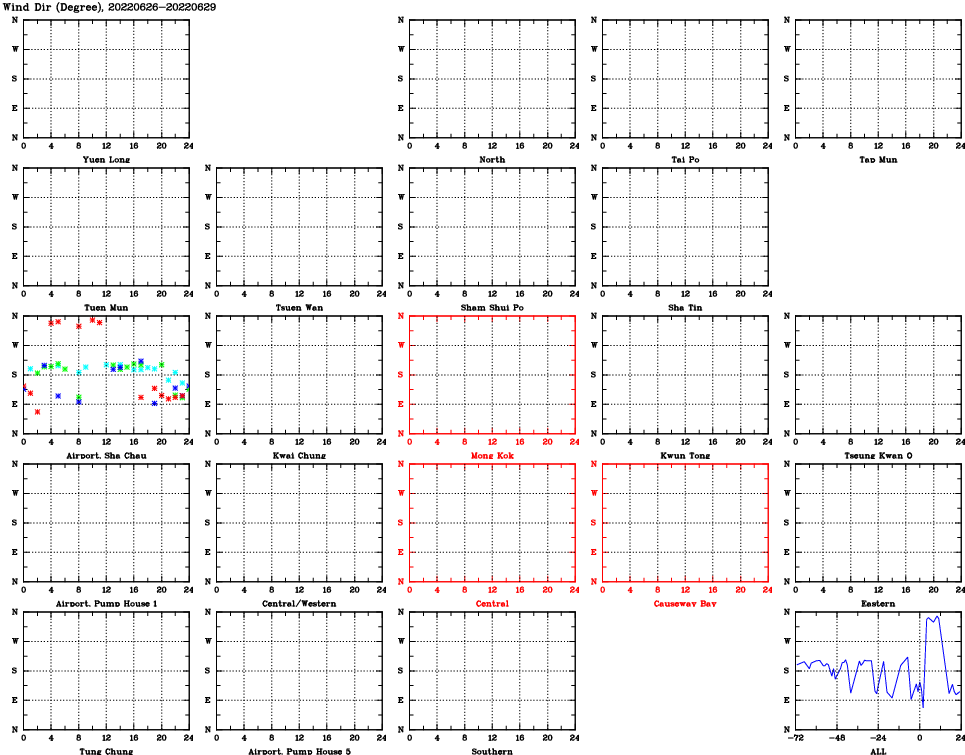 | Air Quality Data Time Series for WD (2022/06/29) | ( Line colors: Day -3 Day -2 Day -1 Current day ) | 2D Map Current AQHI |