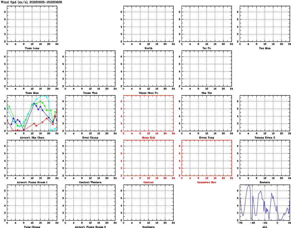 | Air Quality Data Time Series for WS (2022/06/28) | ( Line colors: Day -3 Day -2 Day -1 Current day ) | 2D Map Current AQHI |