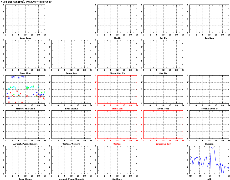| Air Quality Data Time Series for WD (2022/06/30) | ( Line colors: Day -3 Day -2 Day -1 Current day ) | 2D Map Current AQHI |