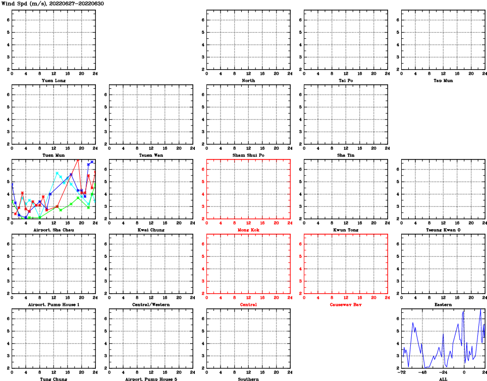 | Air Quality Data Time Series for WS (2022/06/30) | ( Line colors: Day -3 Day -2 Day -1 Current day ) | 2D Map Current AQHI |