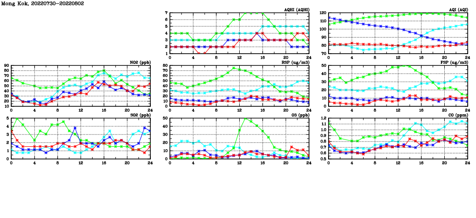 | Parameters: | AQHI | AQI | RSP | FSP | NO2 | SO2 | O3 | CO | Temp | WS | WD |