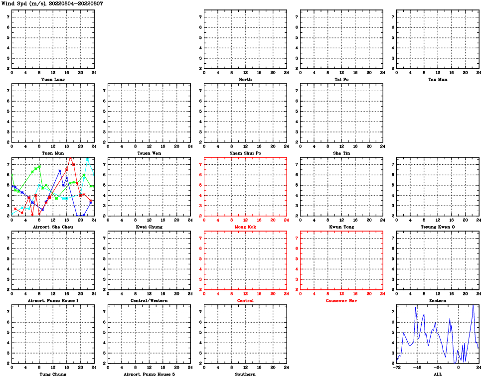 | Air Quality Data Time Series for WS (2022/08/07) | ( Line colors: Day -3 Day -2 Day -1 Current day ) | 2D Map Current AQHI |