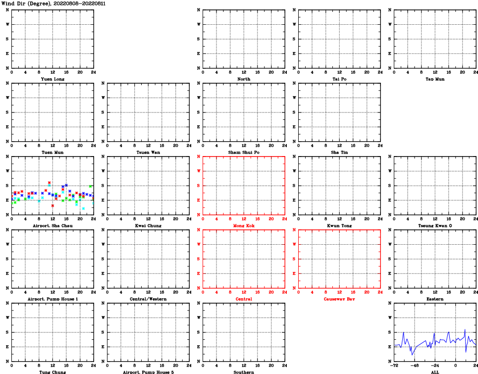 | Air Quality Data Time Series for WD (2022/08/11) | ( Line colors: Day -3 Day -2 Day -1 Current day ) | 2D Map Current AQHI |