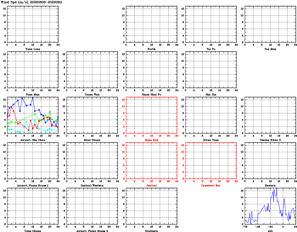 | Air Quality Data Time Series for WS (2022/08/11) | ( Line colors: Day -3 Day -2 Day -1 Current day ) | 2D Map Current AQHI |