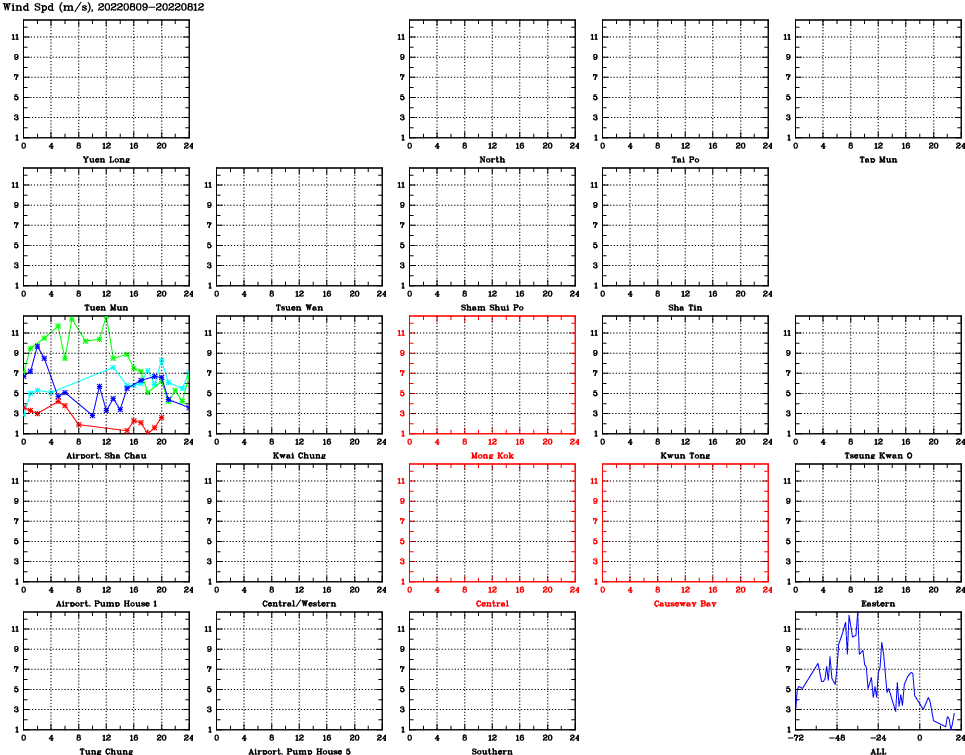 | Air Quality Data Time Series for WS (2022/08/12) | ( Line colors: Day -3 Day -2 Day -1 Current day ) | 2D Map Current AQHI |